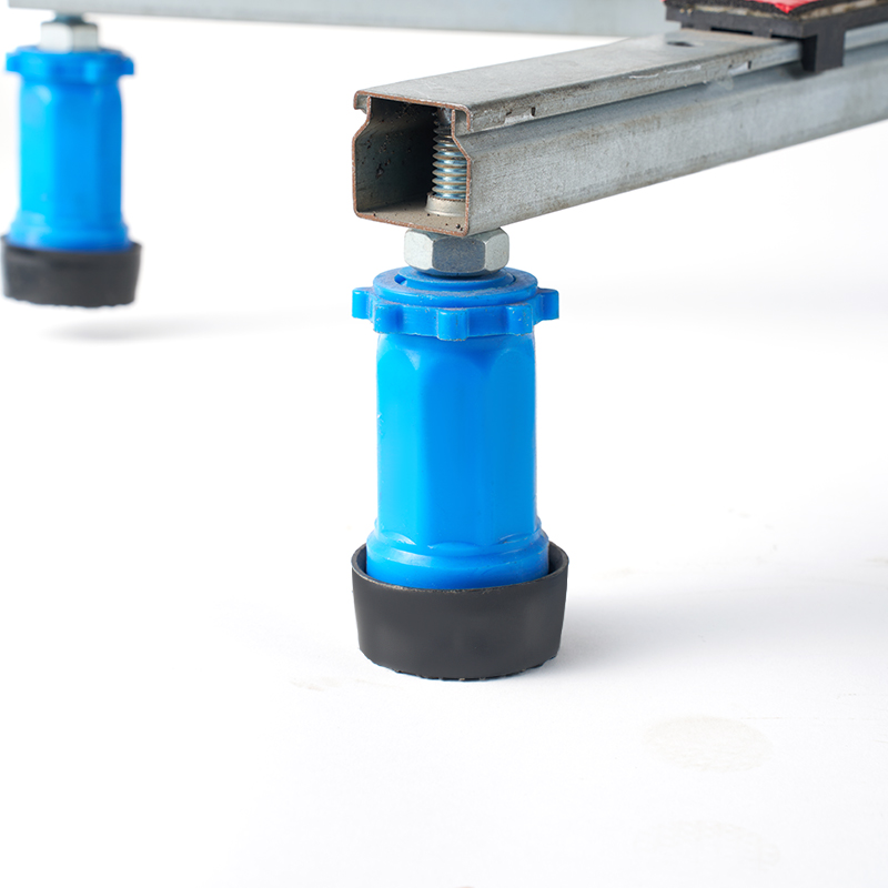 Facilité d'installation : les pieds simplifient l'installation, en particulier sur des surfaces inégales, en permettant des réglages de hauteur sans avoir besoin de travaux personnalisés au sol.
